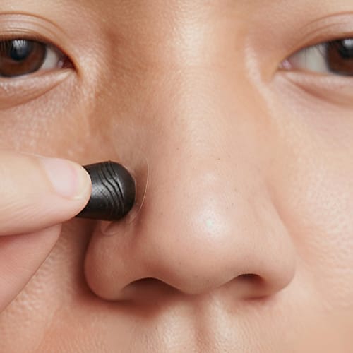 Using the applicator, place the label on each side of your nose, just above the nostrils. Press firmly to ensure full contact.